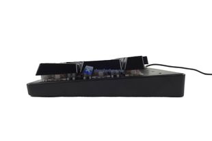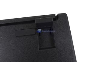 Passiamo a porre la tastiera lateralmente per dare uno sguardo all’altezza senza e con l’impiego dei piedini in plastica per rialzarla e agevolare a seconda delle esigenze il comfort di digitazione.